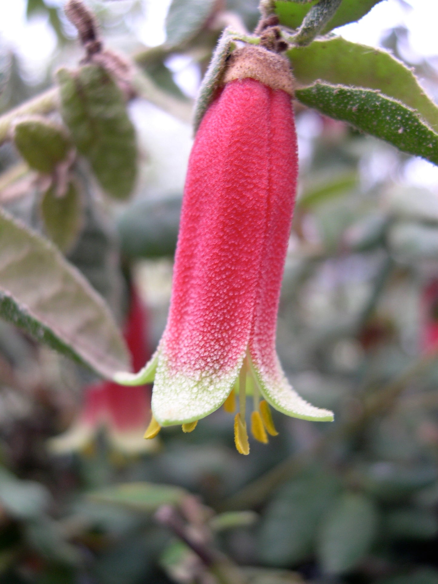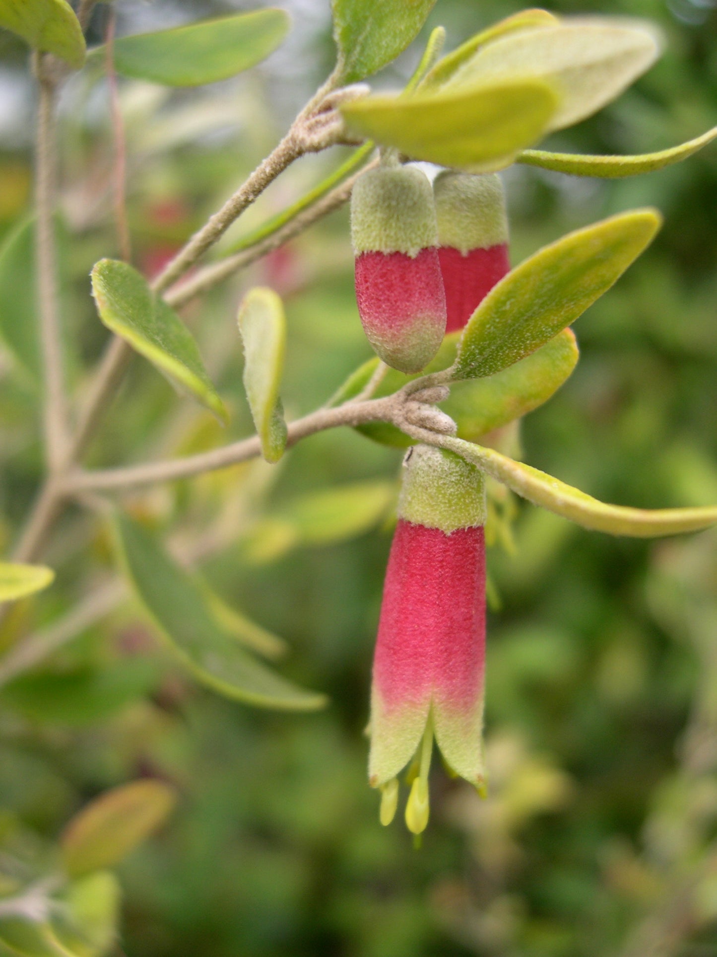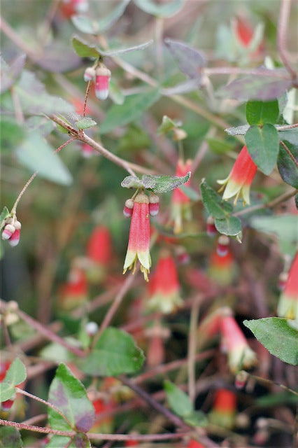 Liven up that allegedly dim Northwest winter with this winter blooming Australian fucshia. Actually in the Citrus family, this Koala Blooms selection is notable for its glowing red flowers tipped in green. Freaky fun. 2ft tall by 2ft wide. Hardy to 18F, USDA zone 8b, otherwise excellent in containers and will happily over-winter in a bright spot indoors.