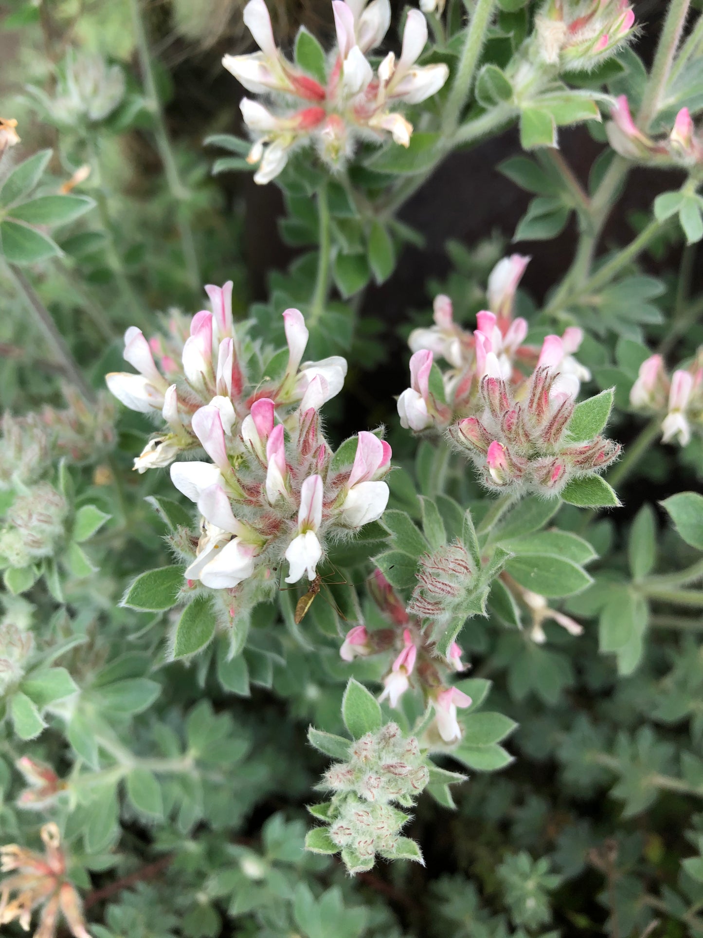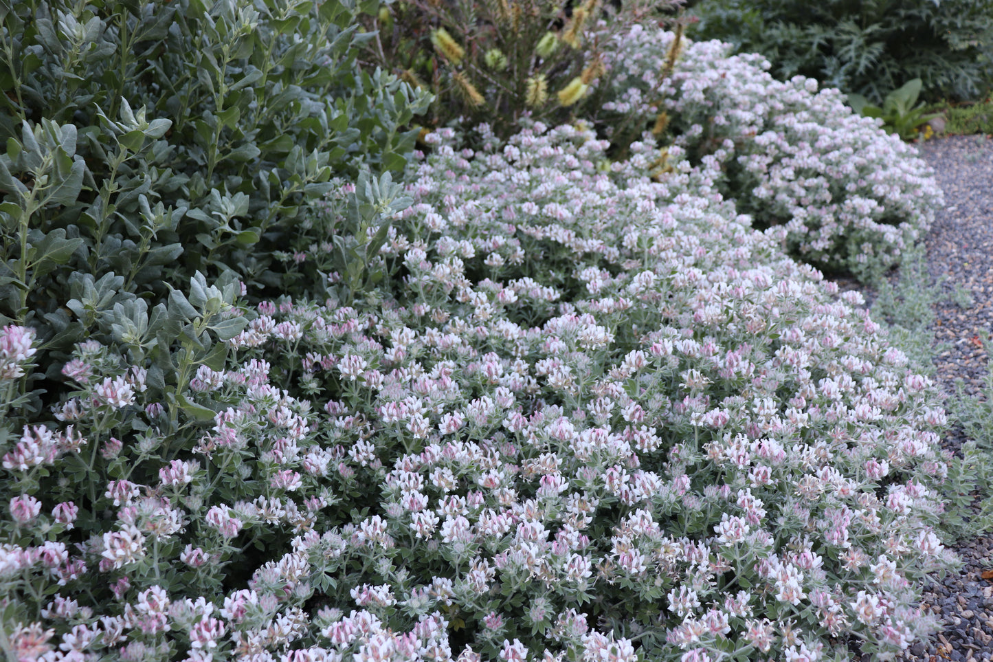 This grey-leaved, pea family sub-shrub is a workhorse in the garden. Fuzzy ever-silver leaves gleam in the sun; the flowers, pink and white, are subtle and attractive; and the glossy mahogany seeds pods provide a long season of interest. Excellent filler in the summer-dry garden. To 2 feet tall x 2.5 feet wide in full to part sun with lean, well-drained soil and little supplemental summer water once established. Easy. Frost hardy in USDA zone 7.