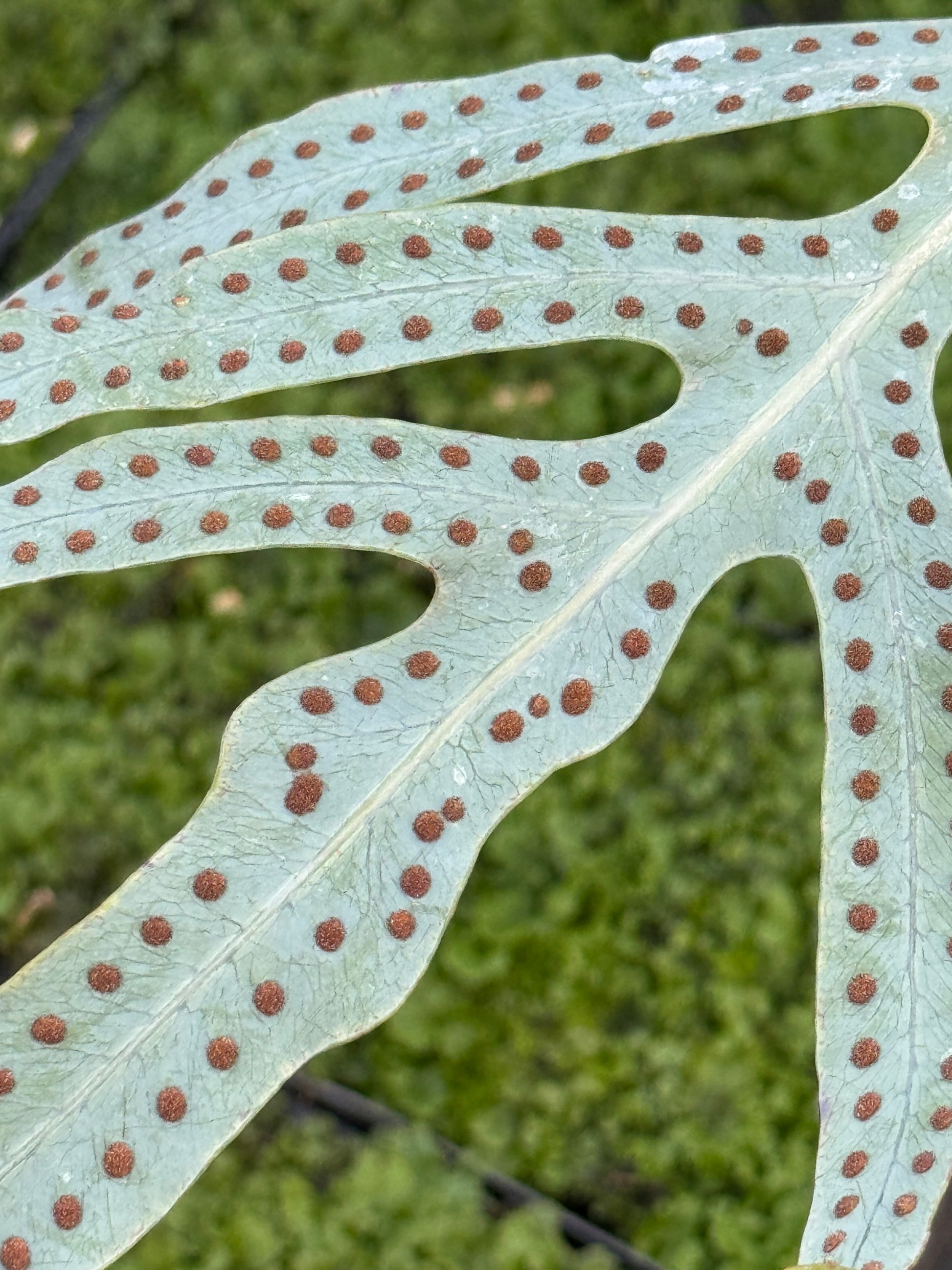 Once part of a more familiar genus and known as Polypodium areolatum, these ferns are handsome by any name with their evergreen, glaucous gray-blue, deeply lobed fronds to only 12" tall emerging from fuzzy red rhizomes that lie close to the surface. Wonderful in the garden in well-drained, consistently moist soil in part sun to dappled shade. Striking as cut foliage. Frost hardy to 10F, USDA zone 8.
