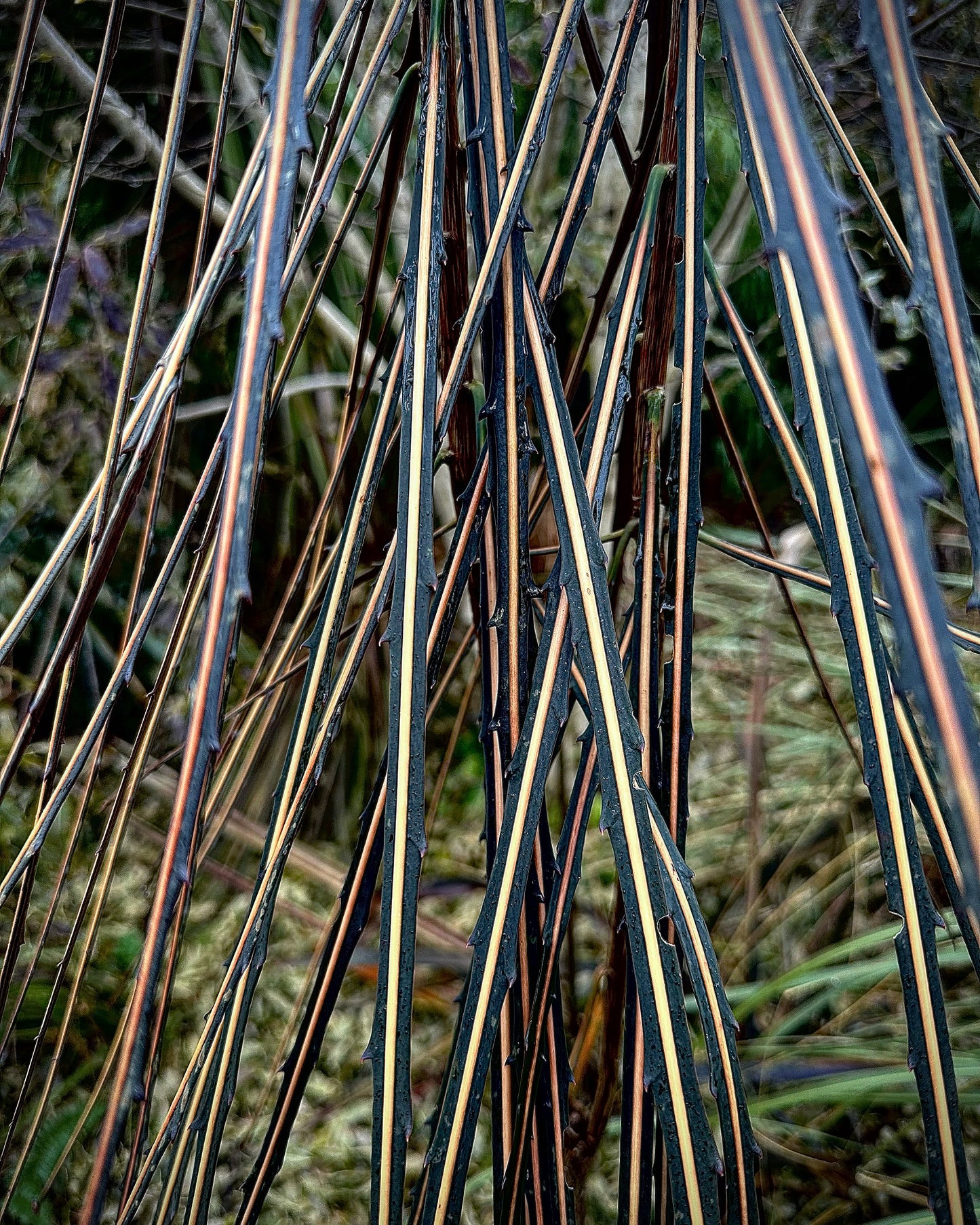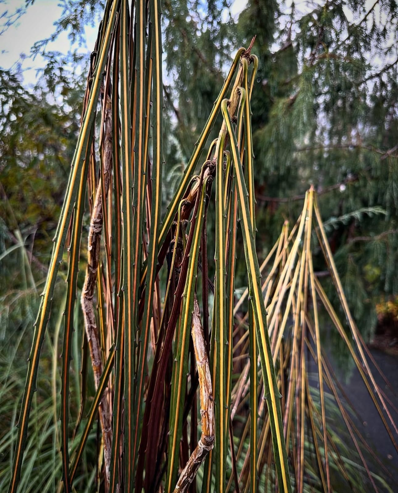 Yet another really weird plant from New Zealand. Much like our favorite cult garden plant, Pseudopanax ferox, but with a thinner, more streamlined leaf. Grows to 3-5 ft tall and is great in a container or sheltered garden spot in sun to dappled shade with summer moisture. Frost hardy to USDA zone 8b in sheltered site.