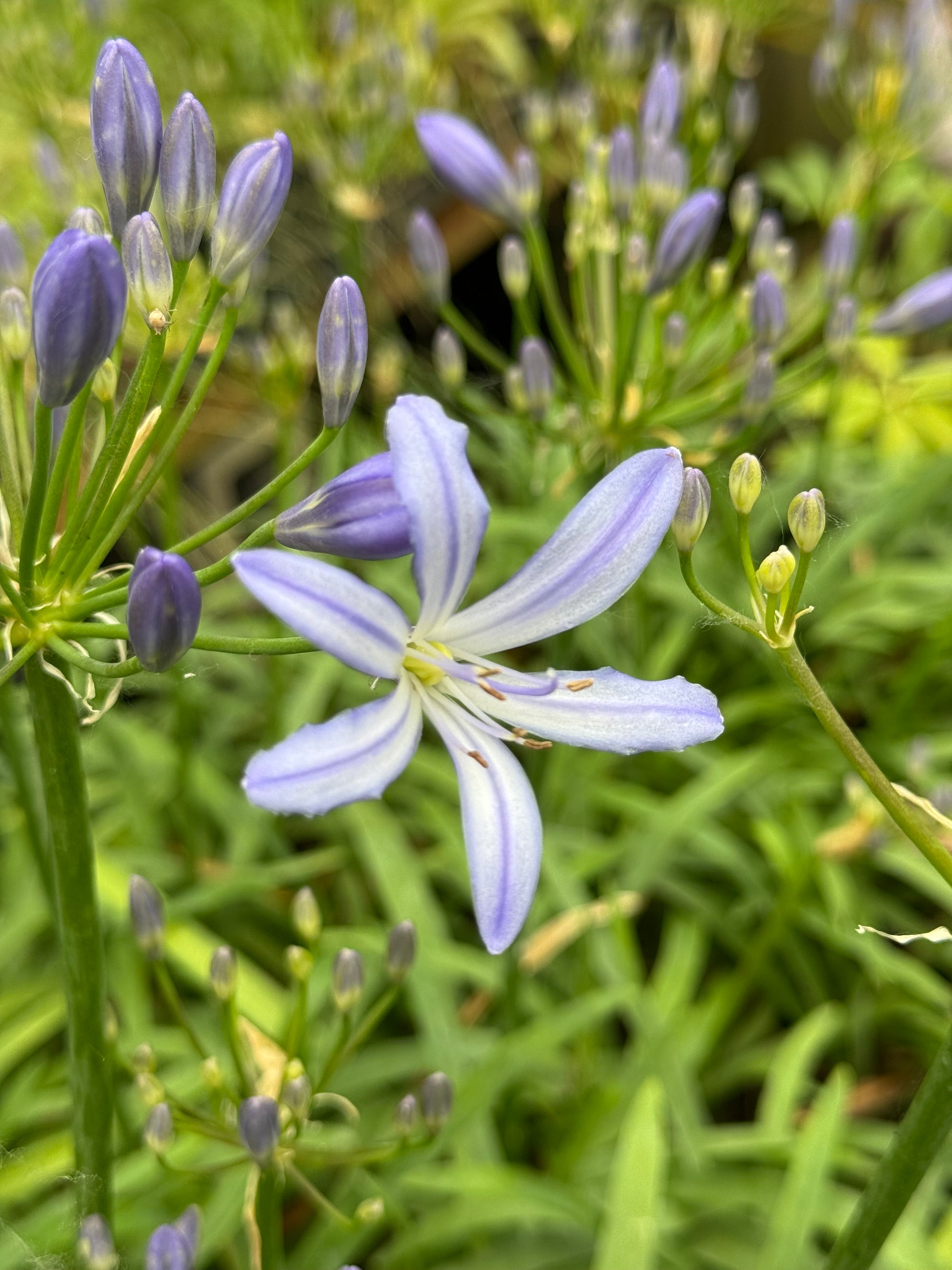 Selections from the old seedling strain of A. ‘Peter Pan’ and even smaller with strap-like leaves to only 6" or so and lavender-blue flowers on foot long stalks. Both dainty and indestructible in the garden. Does best in sun to part shade with regular water in spring and summer. Frost hardy to 0F, USDA zone 7, with mulch for extra protection.