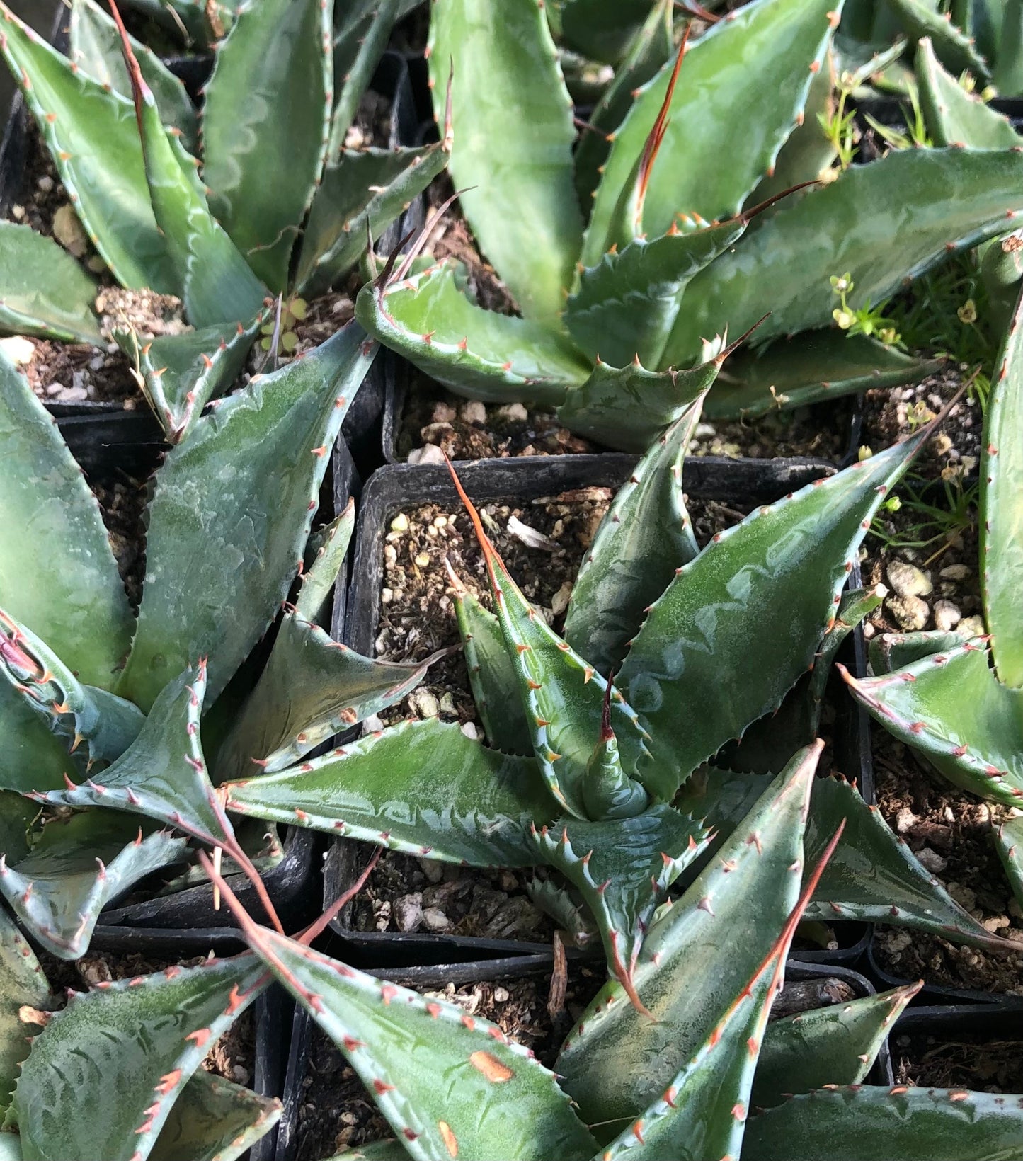 One of the most sculptural century plants from high elevations in Mexico, growing with pines and oaks. These offspring of the famed "Monte" from Lance Wright's Portland OR. garden which bloomed summer 2020 to much fanfare. 3-5ft tall and wide, heavily toothed rosettes are deep olive-green brushed with blue. Accepts average garden moisture if provided excellent drainage. Best in full sun but adapts to partial shade. USDA zone 8, possibly 7b.