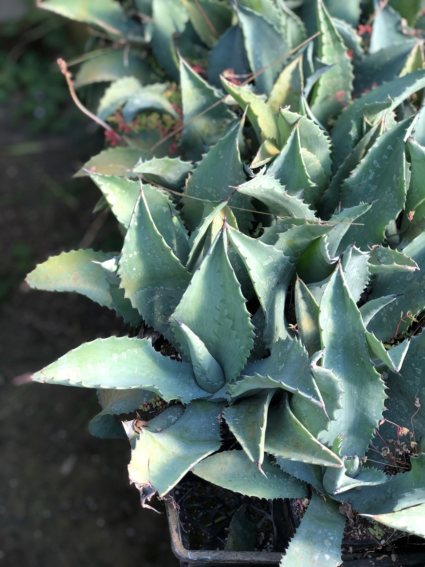 Yes, the leaf edges are wavy on this lovely agave, an introduction by Yucca Do Nursery, possibly a cross between A. salmiana and A. protoamericana. Forms single rosettes to 3-4ft tall by 4-6ft wide, the toothed green leaves with a bluish tinge and velvety texture. Full sun with good drainage and little summer water. Frost hardy to 0F, USDA zone 7.