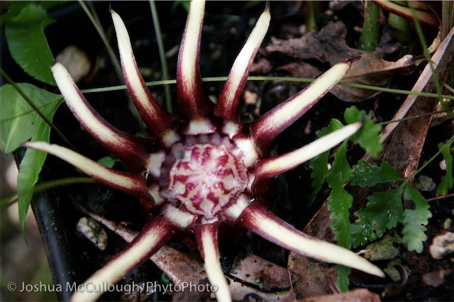 A Cistus introduction of a lovely species, this our seedling selection from Southeast China, with graceful, long green leaves, to 3ft or more, emerging with black sheaths, the leaves humorously spotted almost golden. Tolerant of deep shade and drought, but more pleased with ample summer moisture and good soil. Thus far frost hardy to upper USDA zone 7. We think this is one of the most graceful of all the aspidistras.
