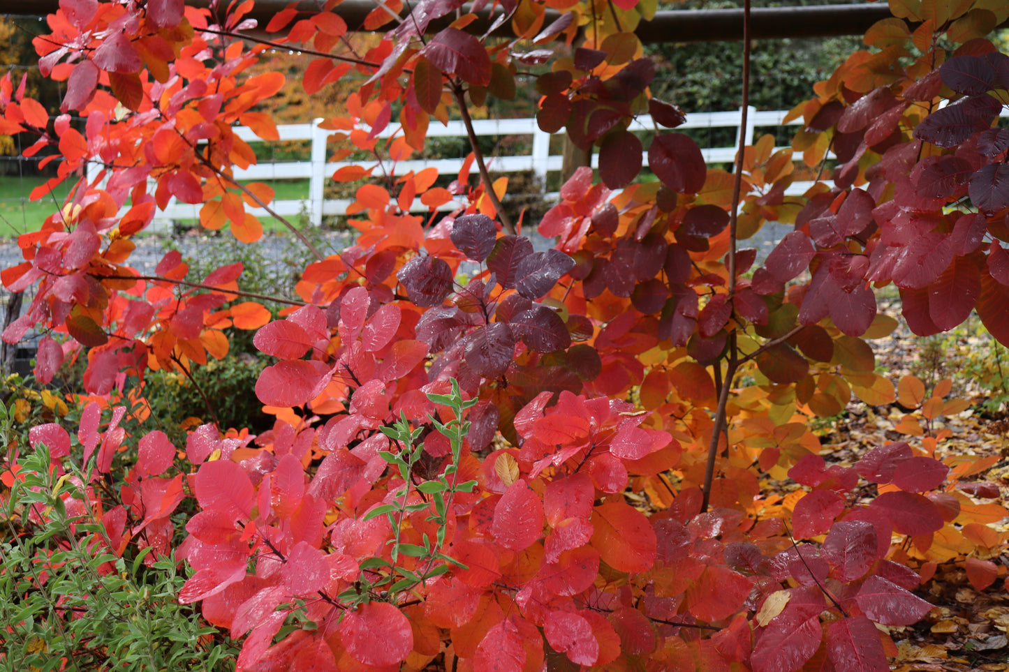 Unrivaled for all year glowing color, it becomes even more exquisite in the fall when the summer purple color turns to a startlingly bright red. Grown for its exquisite foliage, reaching 10ft or so high and wide in full to part sun. Drought tolerant once established but appreciates occasional summer water. Deciduous and frost hardy to -20F, USDA zone 5.