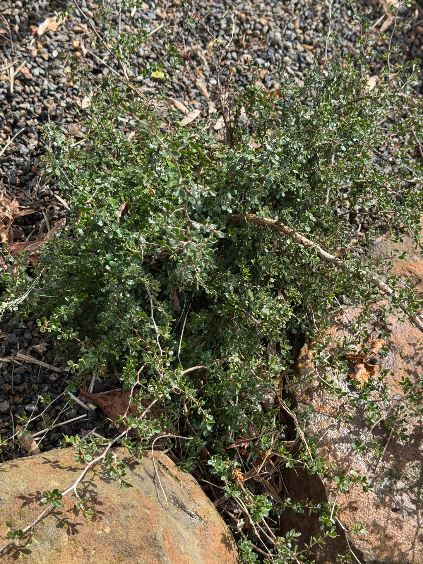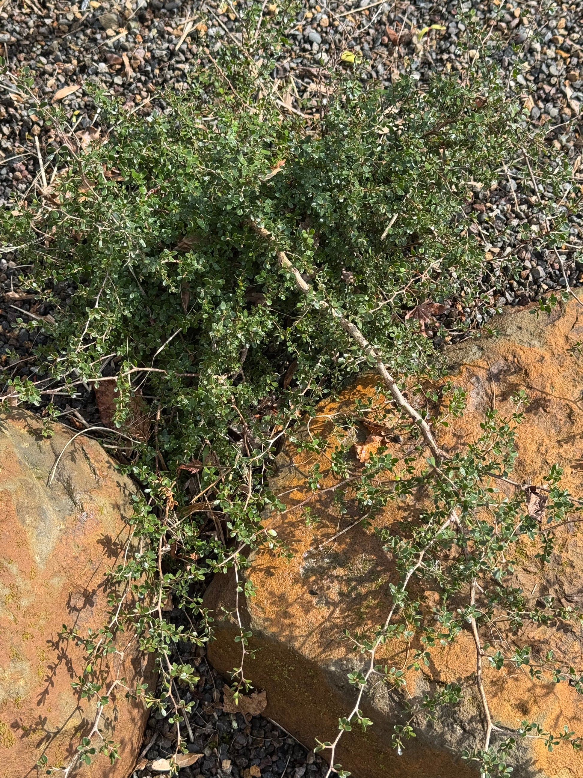 Introduced by Xera Plants, this narrow upright shrub is truly an interesting addition to any garden. To 5 ft tall x 2 ft wide, with, indeed, squiggly stems ending in pink tips. Leaves are dark green and late spring flowers are white. This is the perfect shrub to fit in a small space. For full sun and at least occasional summer water. Very cold hardy having taken Portland temperatures several frigid winters - USDA zone 8.