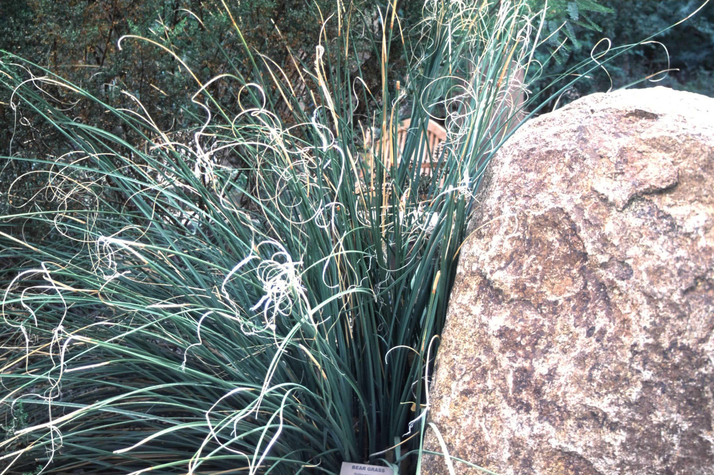 Clumping sotol growing eventually to 6 feet with three foot long narrow leaves which form a dense evergreen mound. White flowers held well above foliage in summer. Full sun, a little summer water. Hardy to 0F if planted in well-drained soil. USDA zone 7.