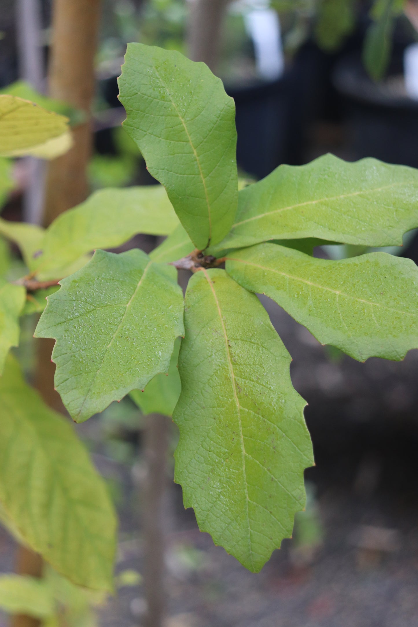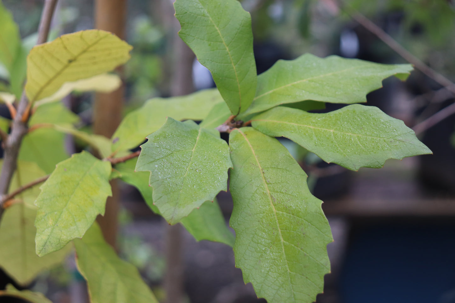 Handsome oak, native from south Texas well into Mexico. Trees reach 30 ft or so in the garden with a canopy nearly that wide. Leaves emerge pinky red and mature to 6" long, green with blue tints above, paler on the undersides. Drought tolerant once established but accepts, even likes, a bit of summer water in dry places. A wonderful street tree, very tolerant of urban conditions. Evergreen at least to the mid teens F, USDA zone 8 and frost hardy to 0F or below, zone 7.