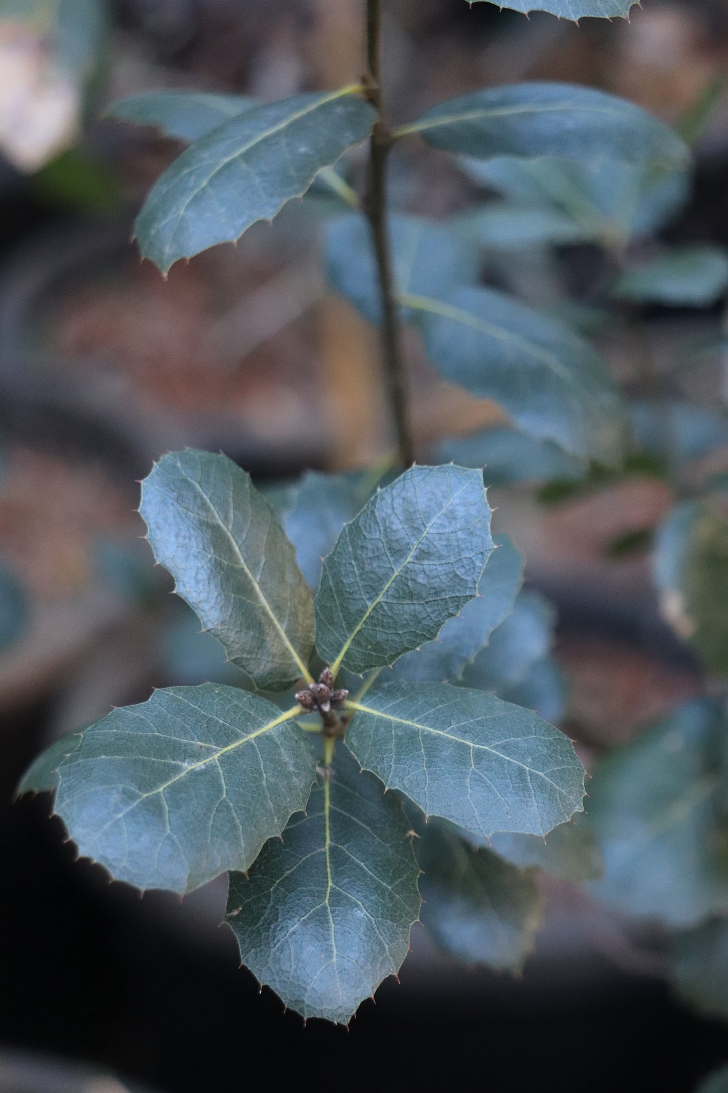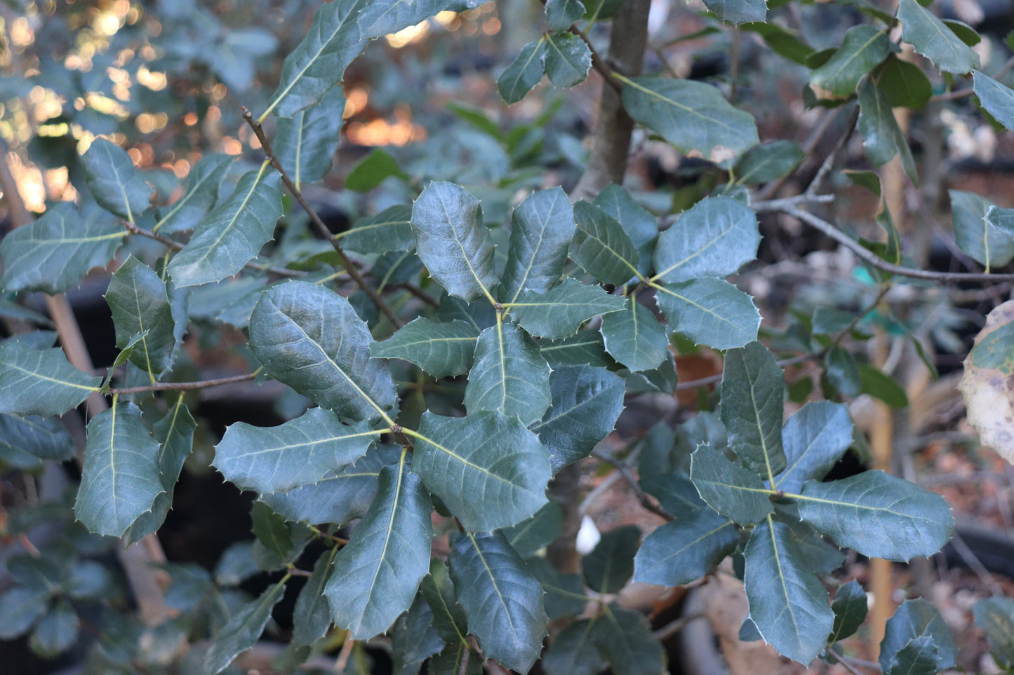 Evergreen tree producing crinkled, somewhat spiny, deep green leaves, silvery bark, and attractive missile-shaped acorns in late summer. To about 25 ft tall with a rounded shape, a tough species for the droughty west. Makes a nice contrast with an olive tree of similar size. Best in full sun in very well-drained soil with only occasional water until established. Frost hardy to 0F, and possibly lower.