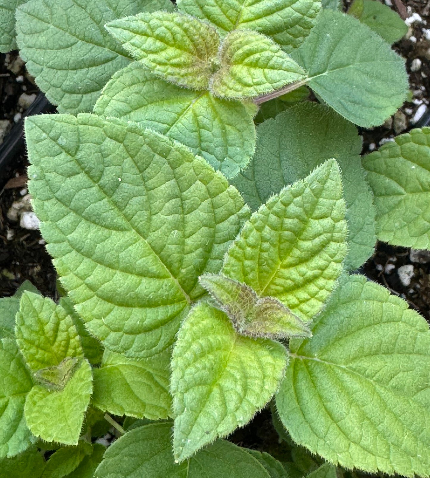Fuzzy, light green leaves that really do smell like honeydew melon when crushed. A small, sub-shrub, to 3 ft tall x 2-3 ft wide, with long, narrow, red-orange tubular flowers on terminal spikes in late summer into autumn. A hummingbird magnate! Best in full to part sun with summer water: goes dormant in a drought. Top hardy in USDA zone 9; said to be root hardy in zone 8. Mulch for extra protection.