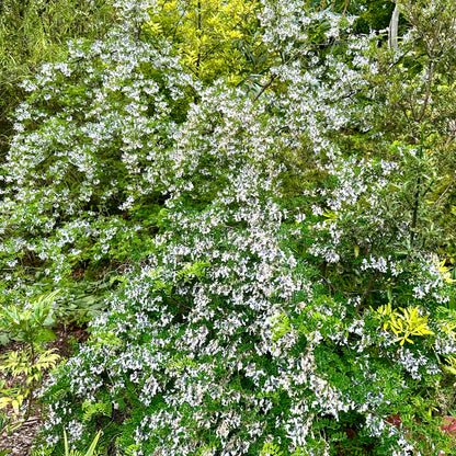 This tough but graceful medium-sized shrub from Western China remains rare in horticulture despite its hardiness and beauty. Small-textured leaves provide excellent background for the blue-tinted flowers spring through summer. Full sun to part shade, excellent long-term, container plant, often semi-evergreen in our climate. Deciduous, but hardy to USDA zone 5.