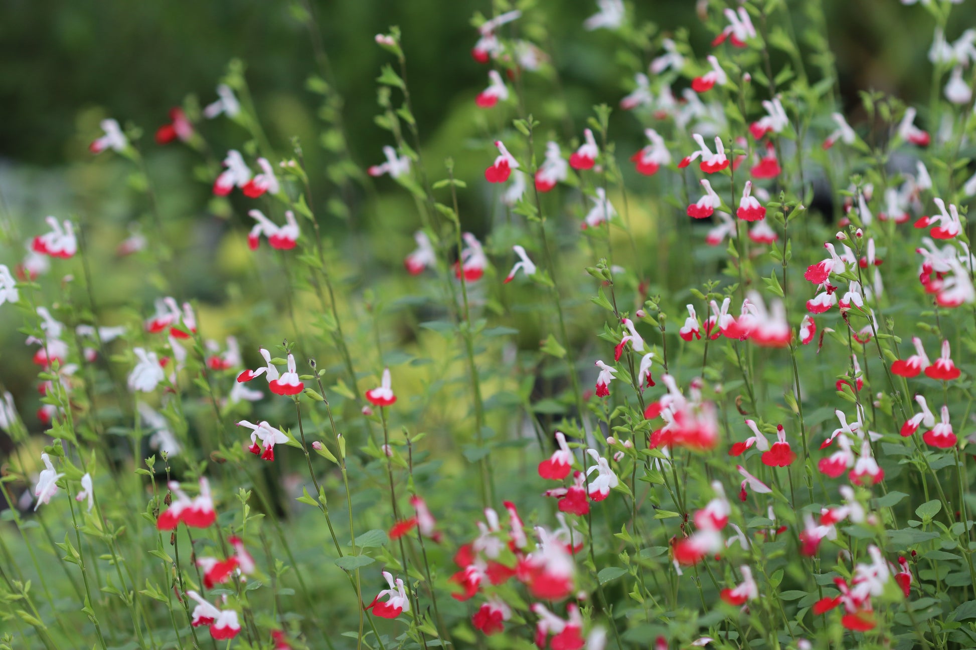 A selection from Strybing Arboretum, this shrubby salvia, to 3 ft tall, goes through two flowering stages; at first flowers are bicolor with hot red and white petals, then, as summer hits its height, pure white flowers appear. Best grown where heat accumulates and not much summer water is provided. Frost hardy into the mid-teens F, mid USDA zone 8. Protect from winter extremes.