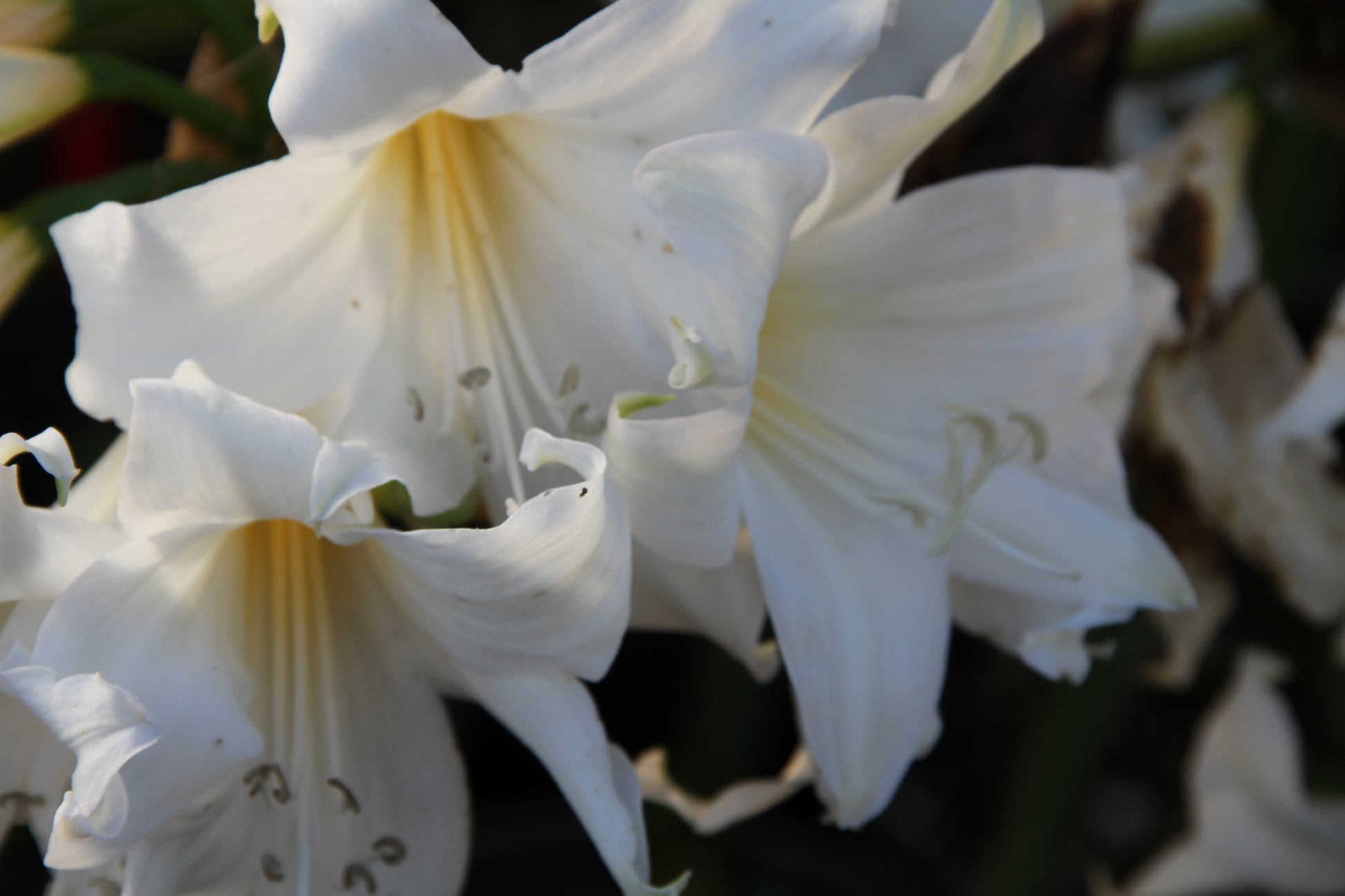 An outstanding autumn flowering bulb from the late Amaryllid breeder Les Hannibal. Perfect for the summer dry garden. Large bulbs often exceeding 6-8 inches are slow to offset, but produce one to several stems ringed with 5 inch white trumpets in August and September before the winter leaves emerge. Frost hardy in USDA zone 8. Full Sun. Best in gritty well drained soil.