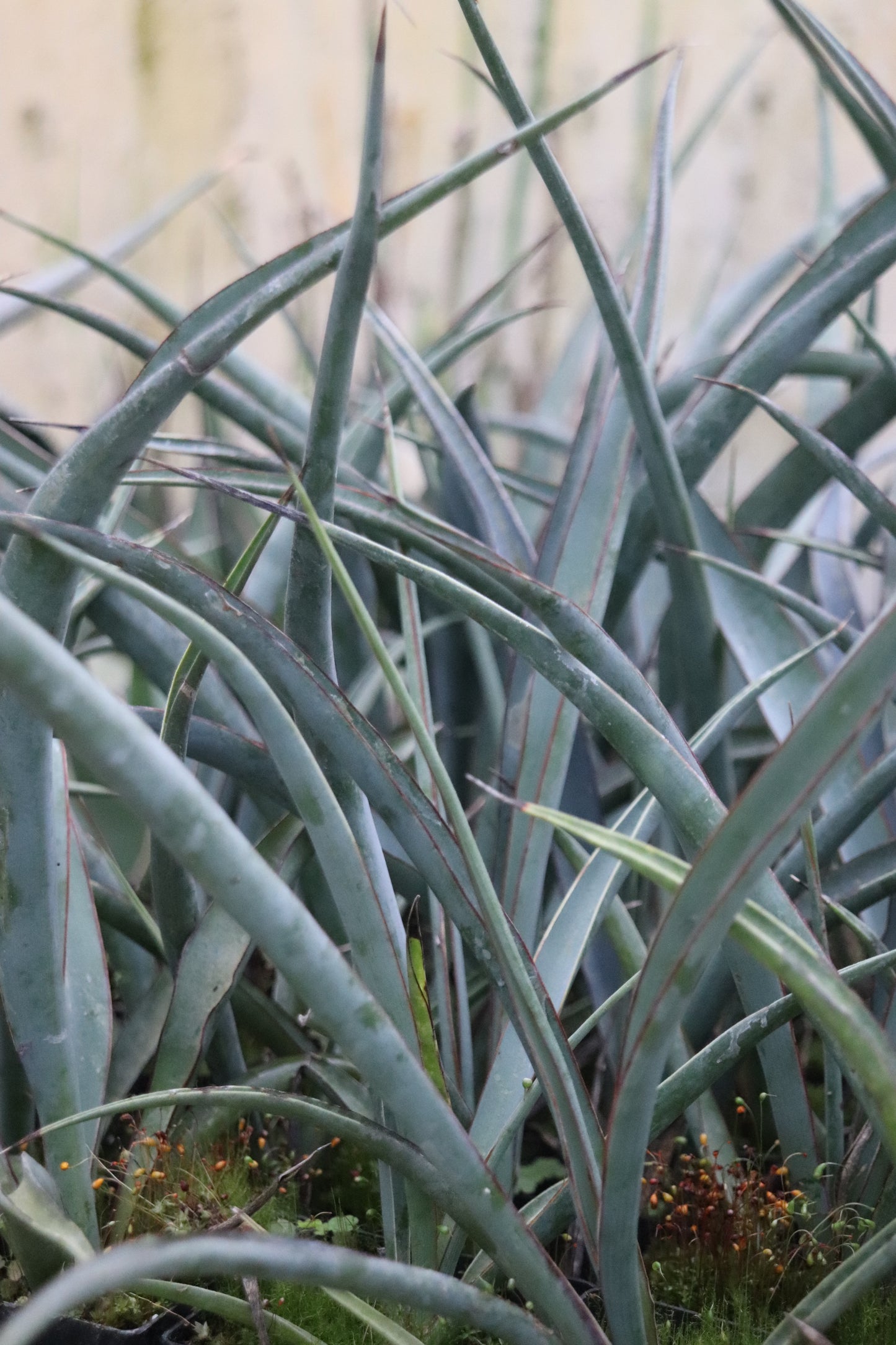 Picturesque, very large yucca with leaves in excess of 4 ft, eventually forming a large shrub or small tree, usually single trunked, to 10 ft and taller with great age. Mature plants produce white bell flowers on 4 ft spikes, usually in spring but not every spring. Native from southwestern Texas to the mountains of Coahuila, Nuevo Leon, Mexico, this represents a particularly blue-leaved form from south of the border. Best with lean soil and good drainage in full sun or very light shade. Drought tolerant but faster growing with occasional summer water. Frost hardy to 0F, USDA zone 7.